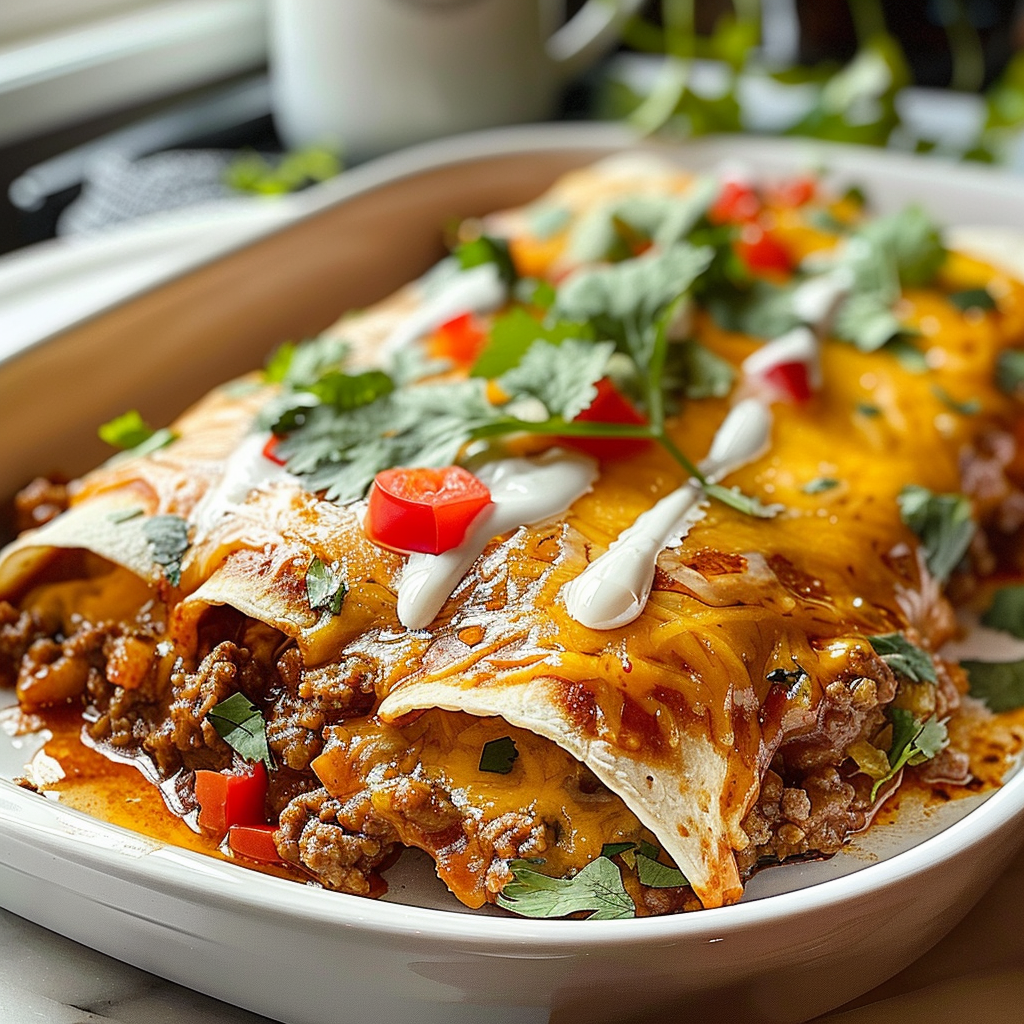 - Cheesy Ground Beef Enchiladas are a delightful blend of flavors
