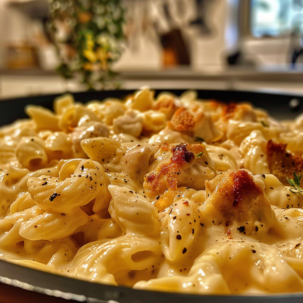 Combine Pasta with Sauce: Drain the cooked pasta, then add it directly into the skillet with the creamy mixture. Toss until every noodle is coated in cheesy goodness.