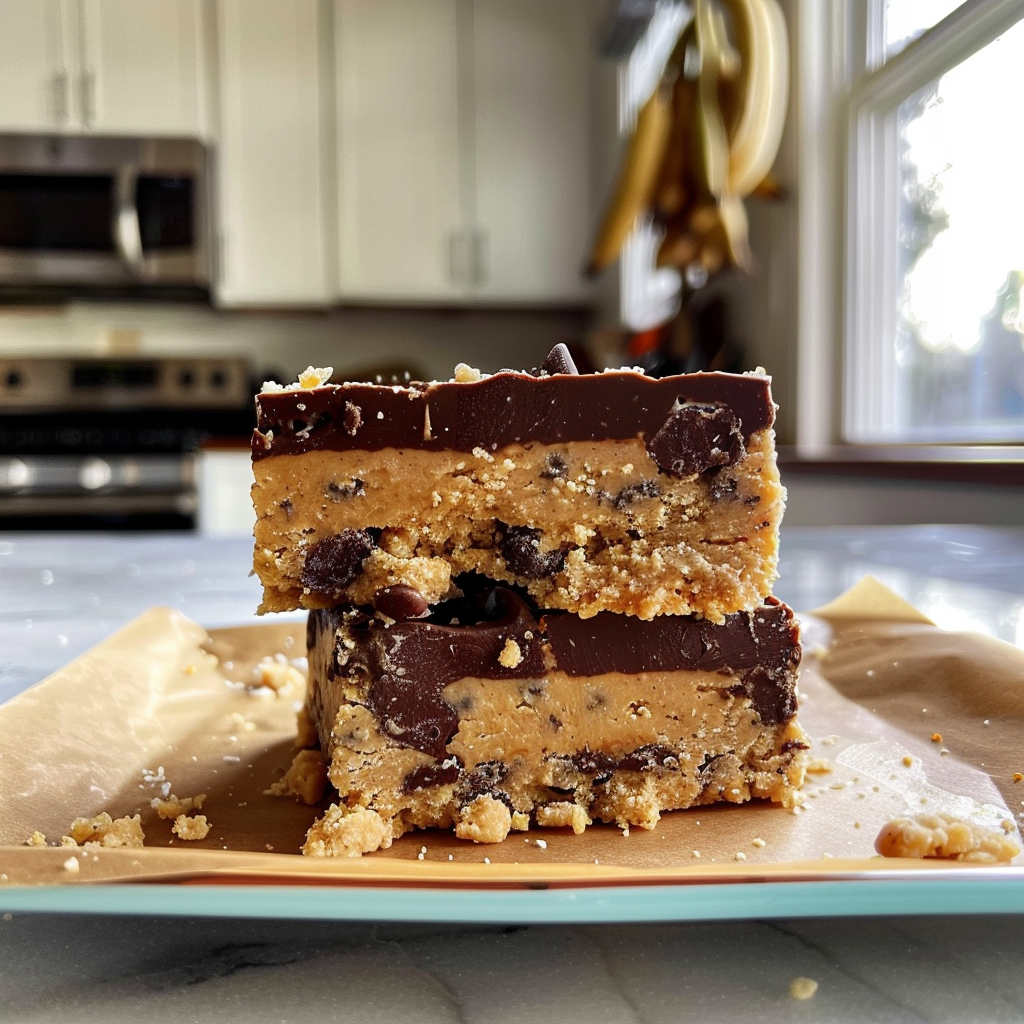 The moment you sink your teeth into these Peanut Butter Cookie Dough Bars, a wave of sweet nostalgia hits you like a warm hug from grandma. Imagine creamy peanut butter mingling with the sweetness of brown sugar, all wrapped up in a chewy, rich texture that practically melts in your mouth. Just one bite transports you back to those carefree childhood days when cookie dough was the ultimate treat, sneaking spoonfuls straight from the bowl while trying to avoid mom’s watchful eyes.
