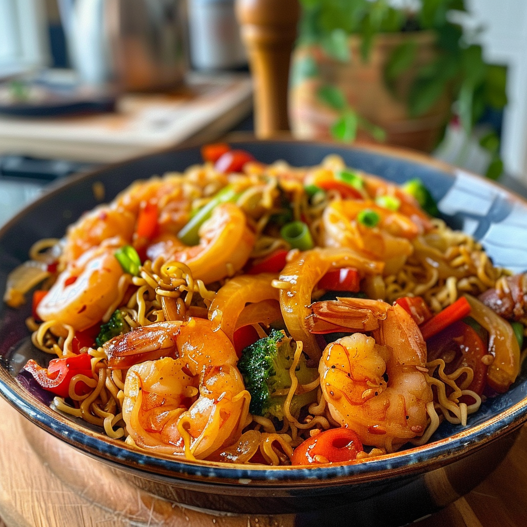 - A shrimp stir fry with noodles is quick, flavorful, and perfect for busy weeknights